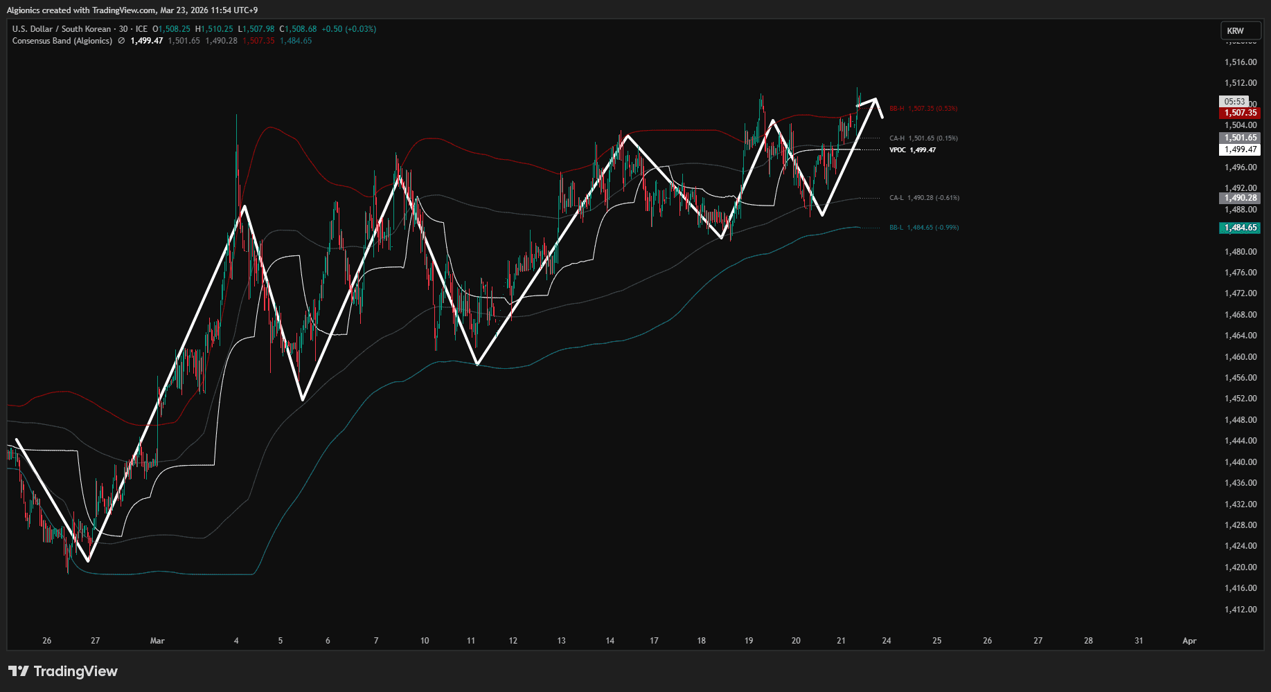 Price inside the Consensus Area means equilibrium. Price beyond the Boundary Band means it has left the structure entirely. You do not interpret the levels. The volume already decided them.