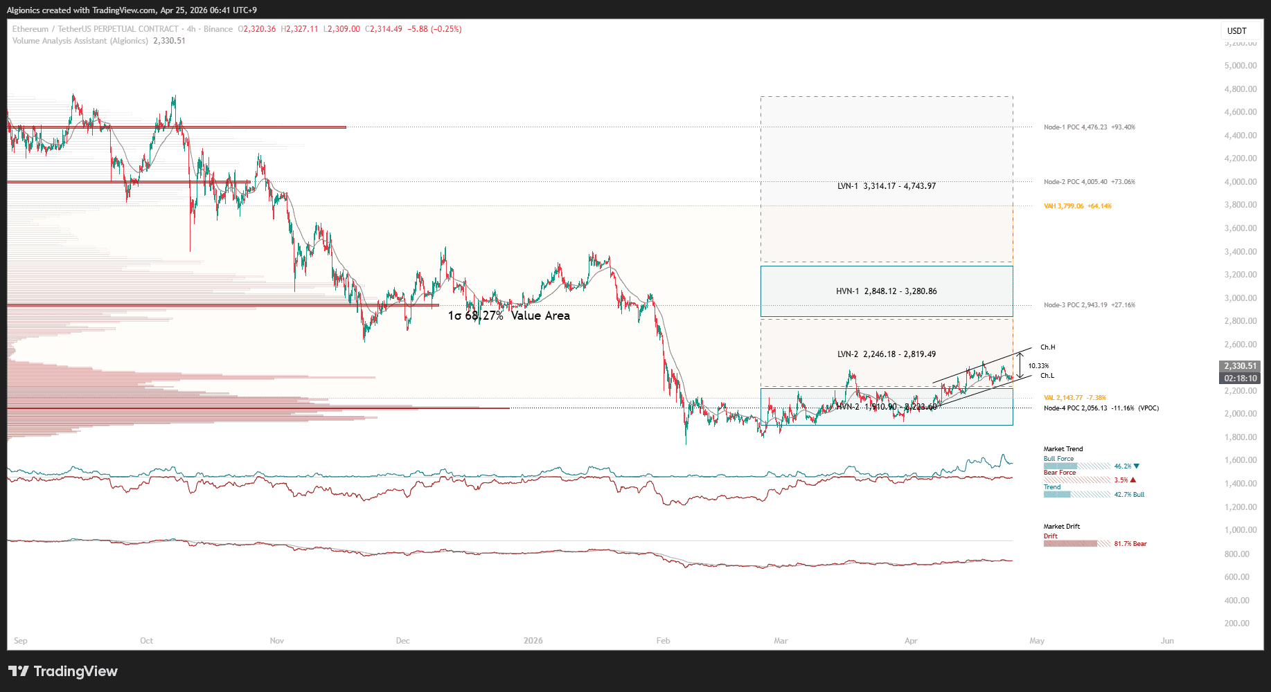 Volume nodes, liquidity lines, force readings, equilibrium, channel, analysis engine, every element can be turned on or off independently. The chart is yours, not ours.