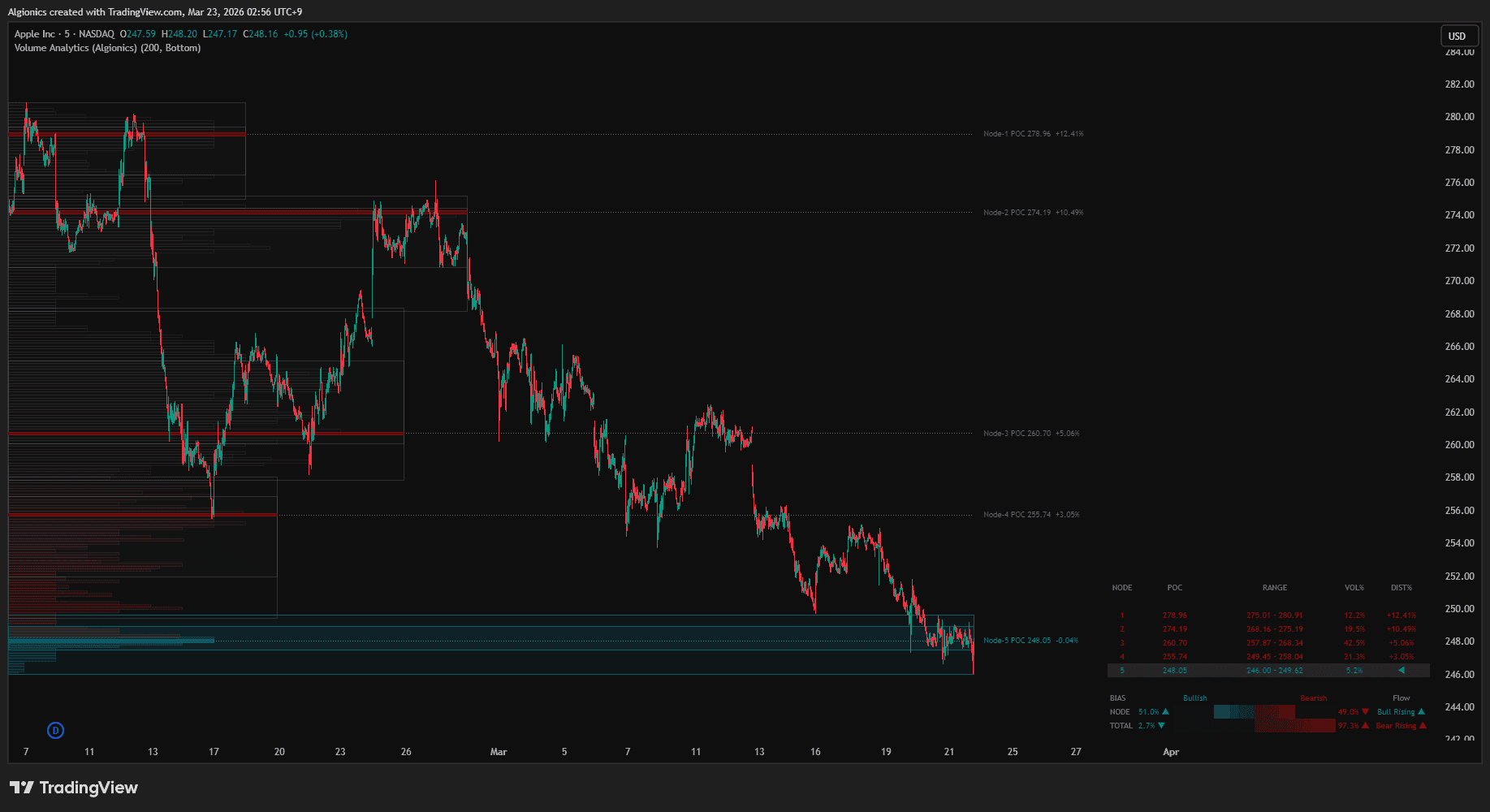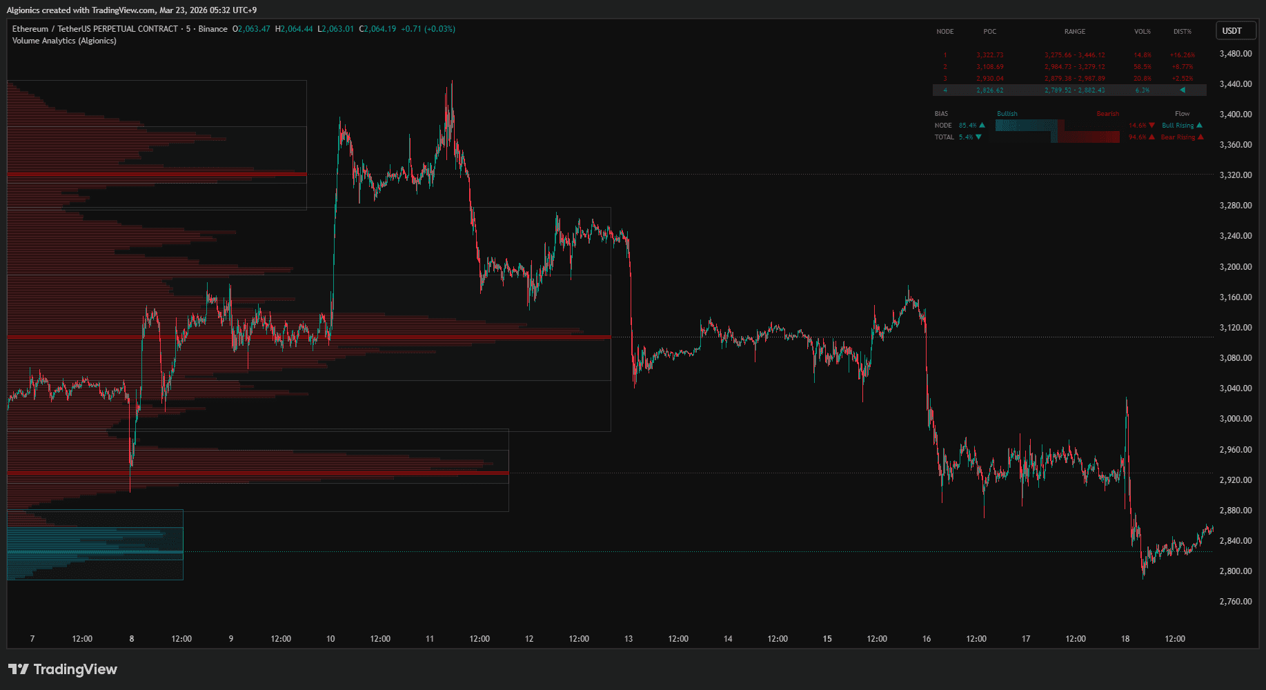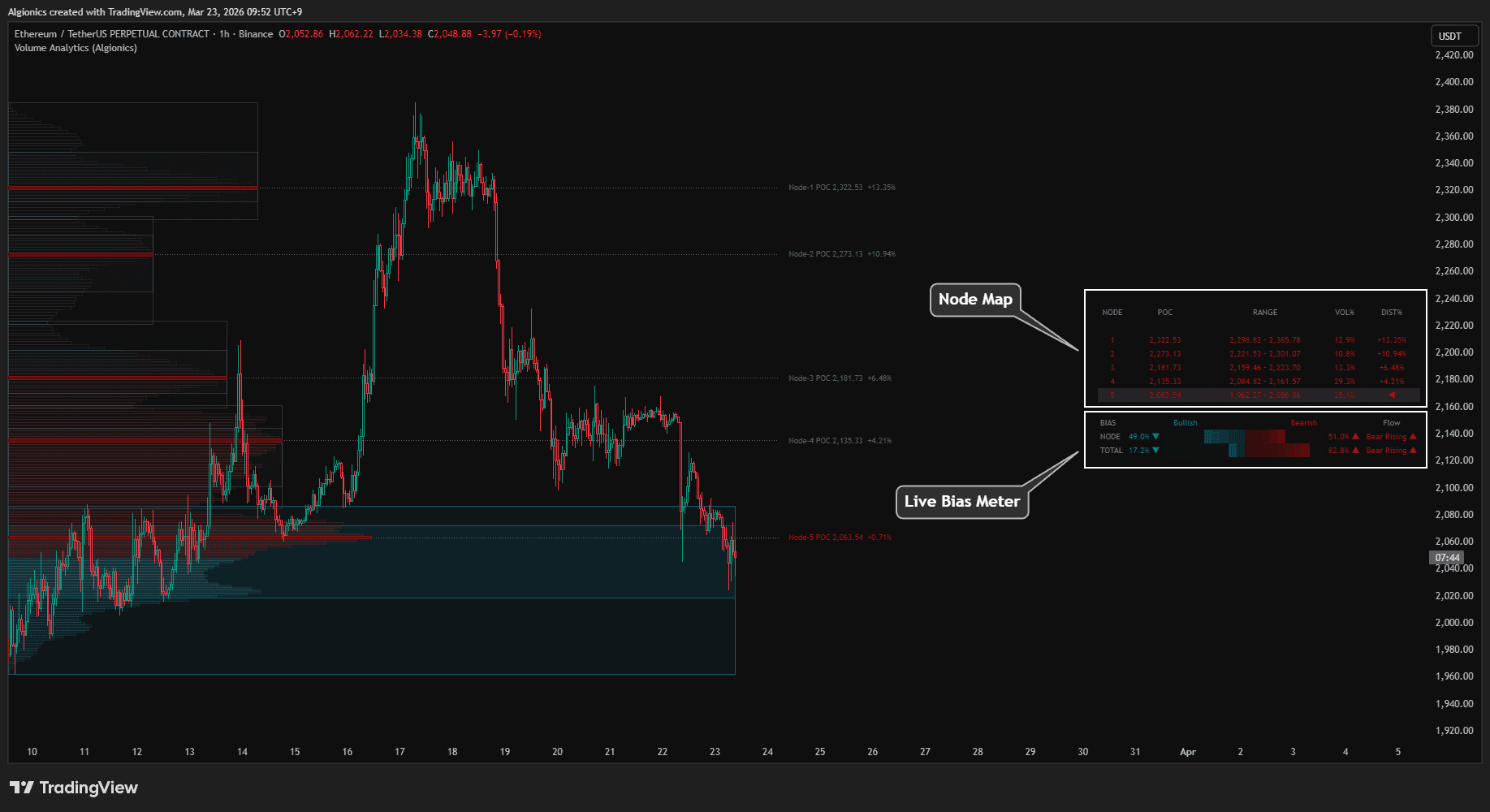 Not just globally, but inside your current node separately, so you see the local fight and the macro verdict side by side. Others give you a profile to stare at. Volume Analytics give you a bias to act on.