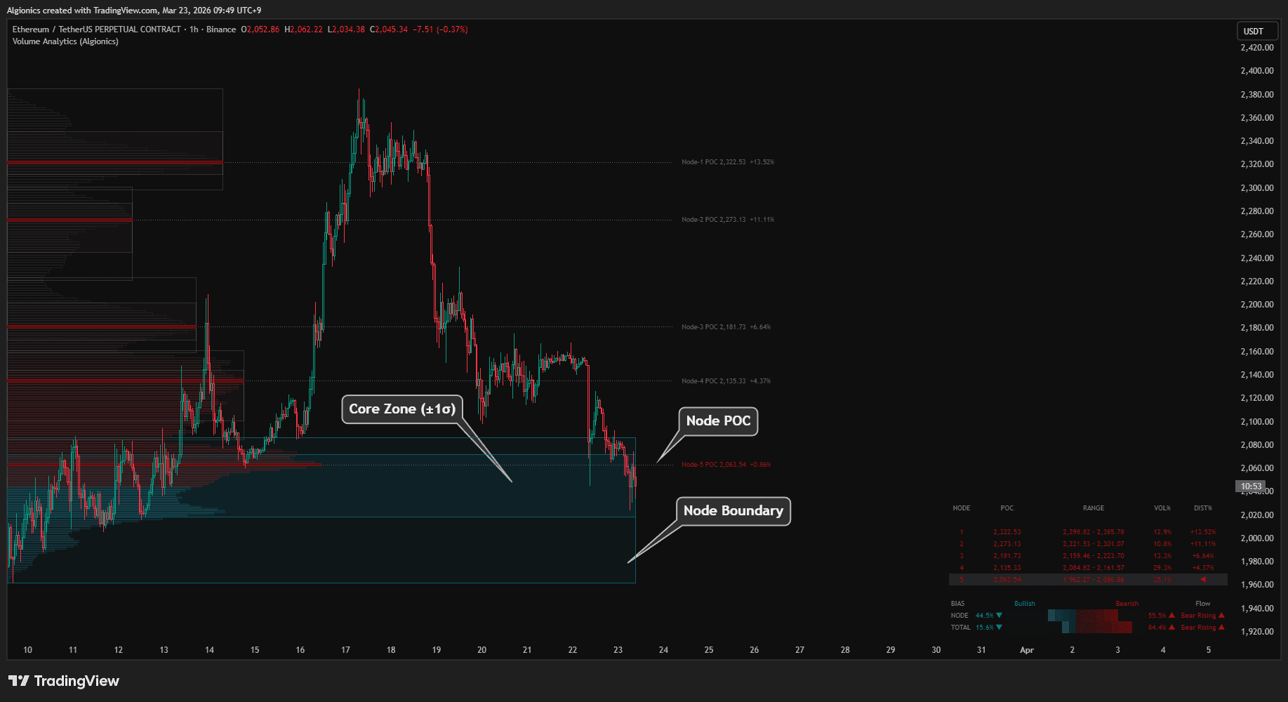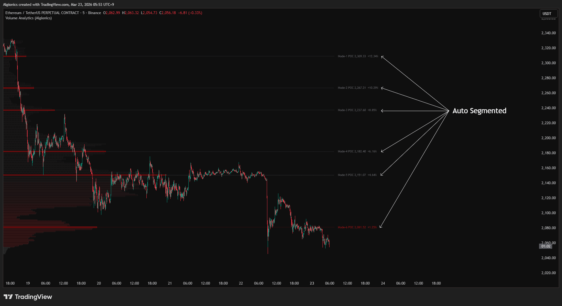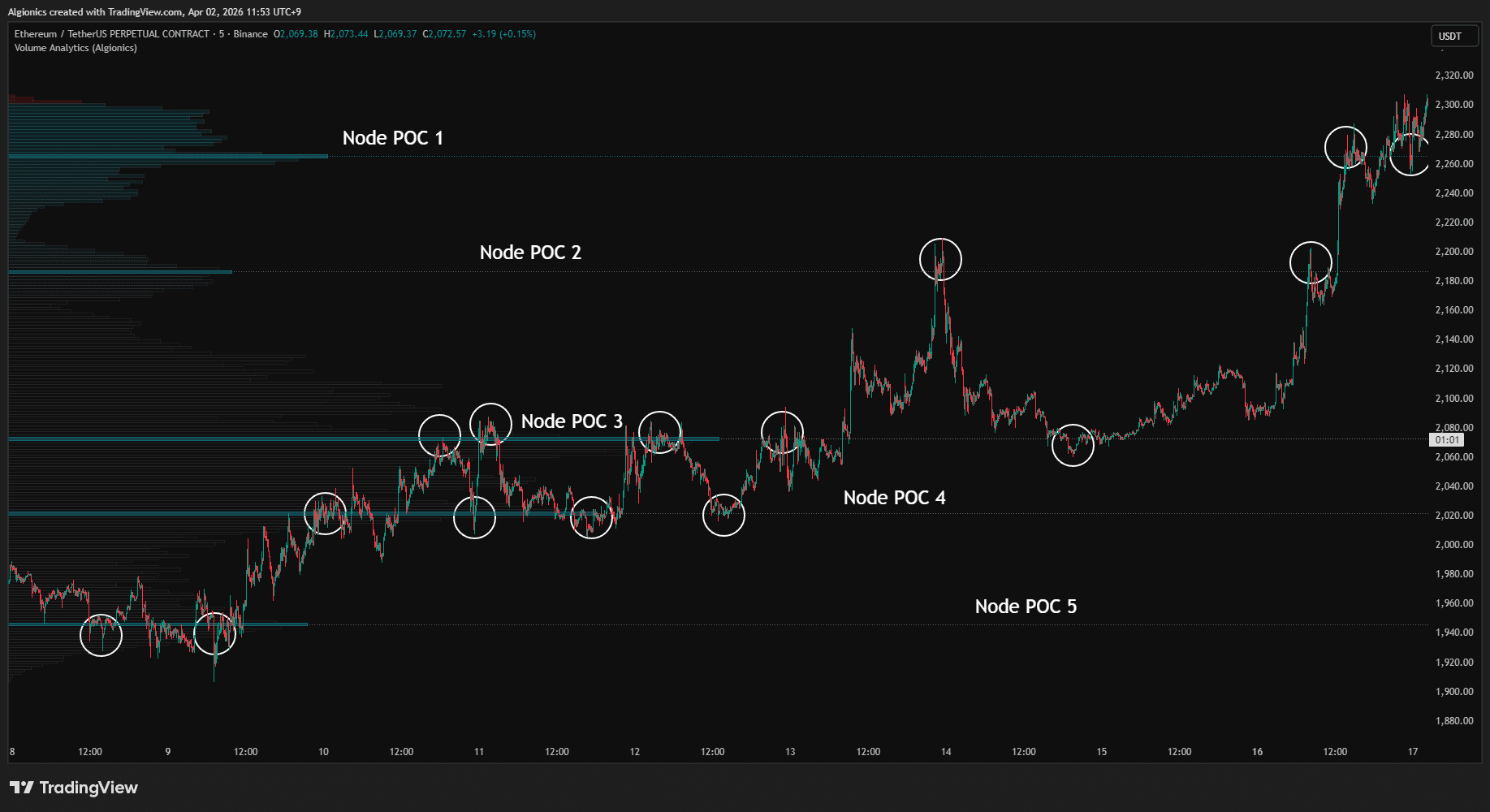 Each node carries its own POC, giving you independent support and resistance references across every structure on your chart.